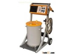 Powder spray gun is used connected of an air compressor and the gun is triggered, the fluidised powder inside 30-90 KV DC output, compressed air flowing from below the fluid tile of the hopper, fluideses powder in the hopper
